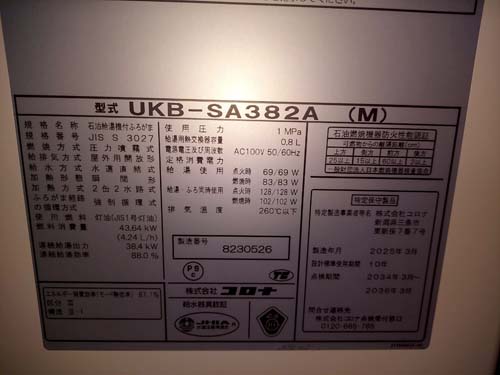 二本松市赤井沢 コロナ給湯器UKB-A4000HTX→コロナ石油給湯機付ふろがまUKB-SA382A(M) 給湯器交換工事