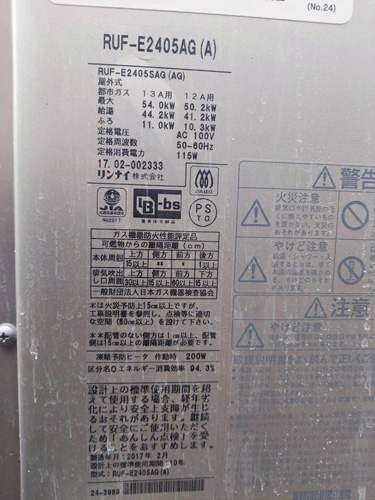 相馬市赤木赤木 リンナイ給湯器RUF-E2405AG(A)→ノーリツ給湯器GT-2470AW 給湯器交換工事