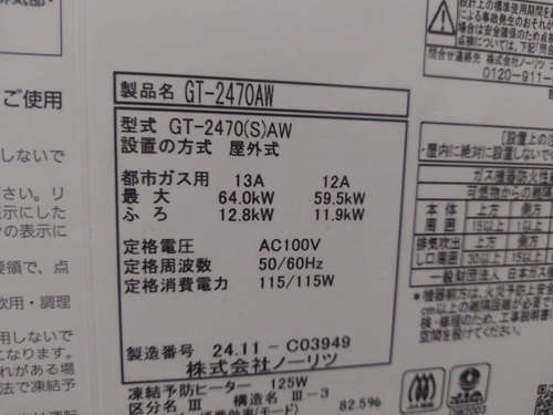相馬市赤木赤木 ノーリツ給湯器GT-2470AW 給湯器交換工事|福島給湯器・ボイラー激安交換工事|福島給湯器.com